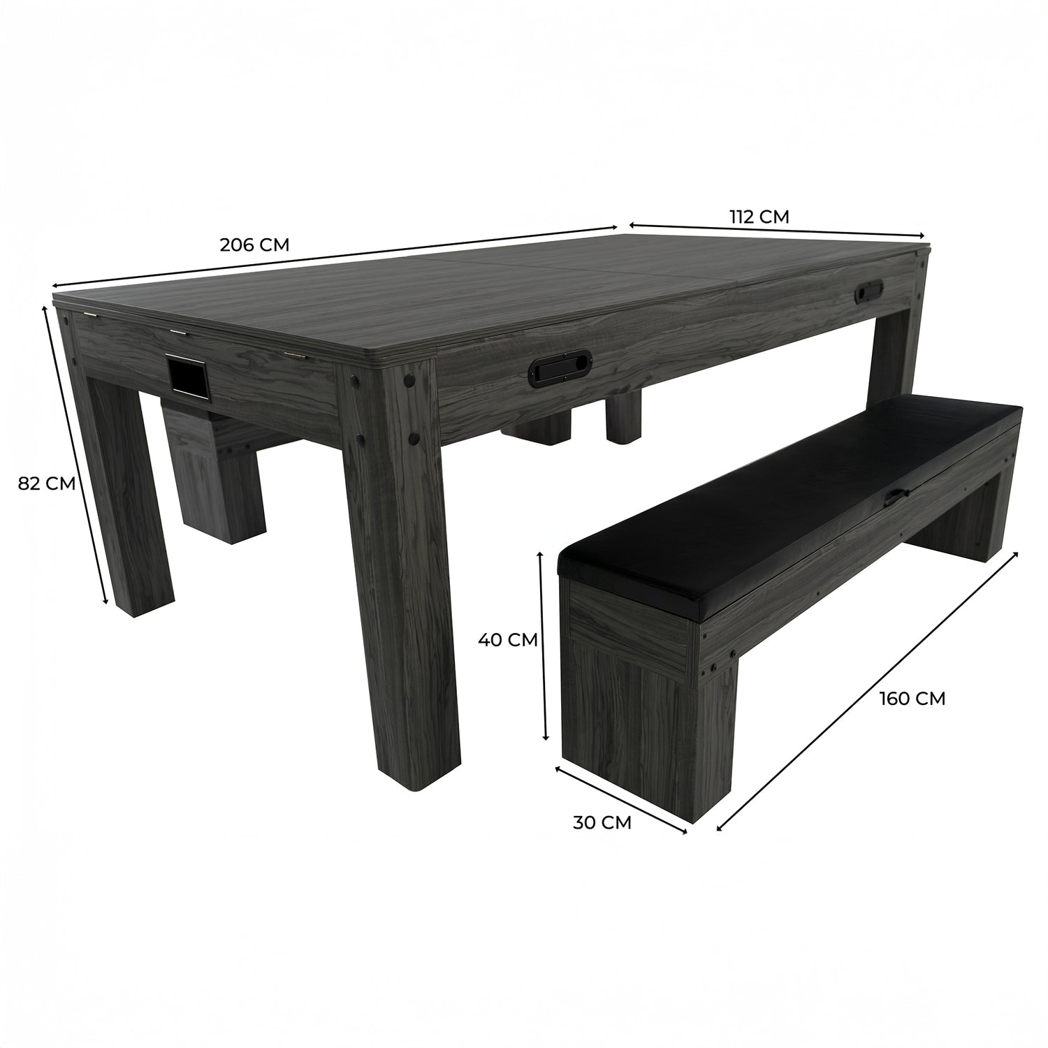 Completing this impressive set are two matching storage benches, thoughtfully designed to enhance both the look and functionality of the table. A plush padded top upholstered in soft PU leather provides comfortable seating for both dining and gameplay, while the lift-up seat reveals a spacious hidden storage compartment. Finished in a coordinating grey tone, the benches blend effortlessly with the table and surrounding décor for a cohesive, well-considered finish.