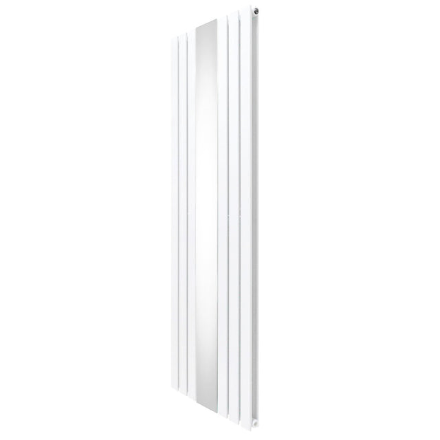 Infuse warmth into your home with our cutting-edge flat panel vertical radiator in white with a sleek central mirror - a perfect blend of timeless elegance and modern efficiency.