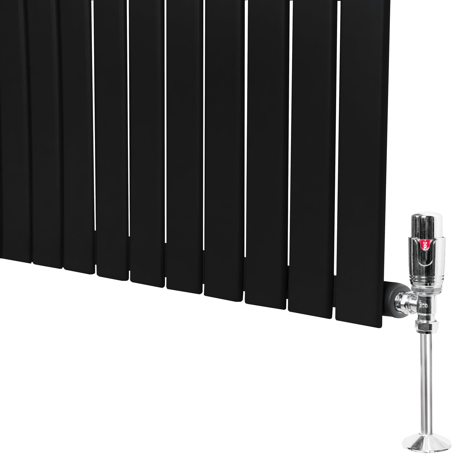 Infuse warmth into your home with our cutting-edge flat single column radiators in black and thermostatic chrome valve set - a perfect blend of timeless elegance and modern efficiency.