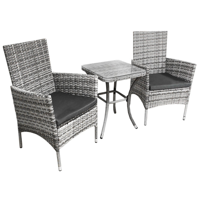 Designed for maximum style and comfort, this exquisite bistro set has 5cm thick cushions, seats 2 people and is sure to be the perfect centrepiece for any garden tea party. Transform your garden into a private paradise and be the envy of all your friends with this premium seating set. The easy-to-assemble flat-pack furniture enables you to relax outside with a drink in little to no time.