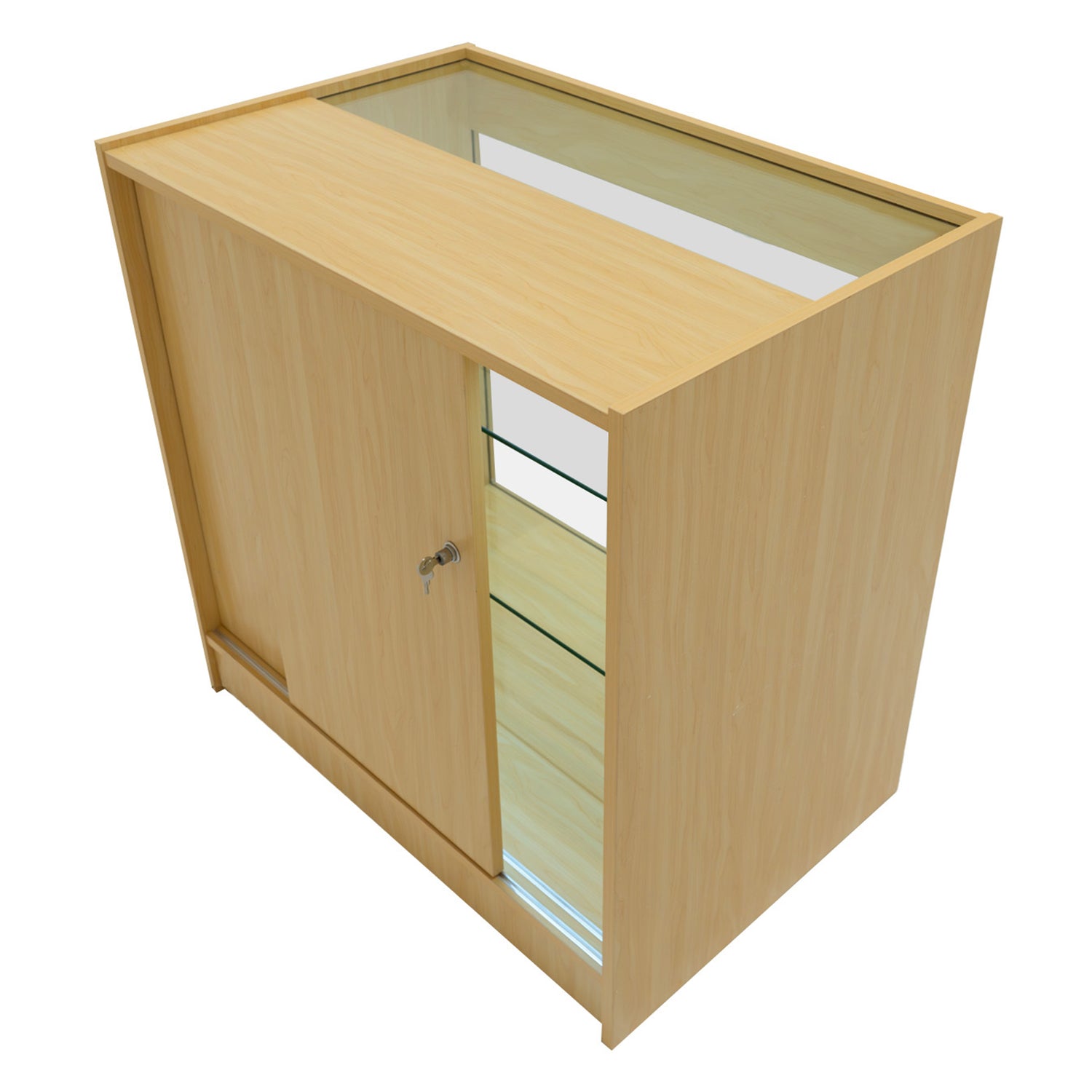 All counters are constructed from high-quality MDF with a durable maple melamine finish, ensuring long-lasting performance and a consistent, contemporary look. This shared material and finish create a unified aesthetic across your counter layout, while toughened glass elements in the K900 add a refined touch to key display areas.