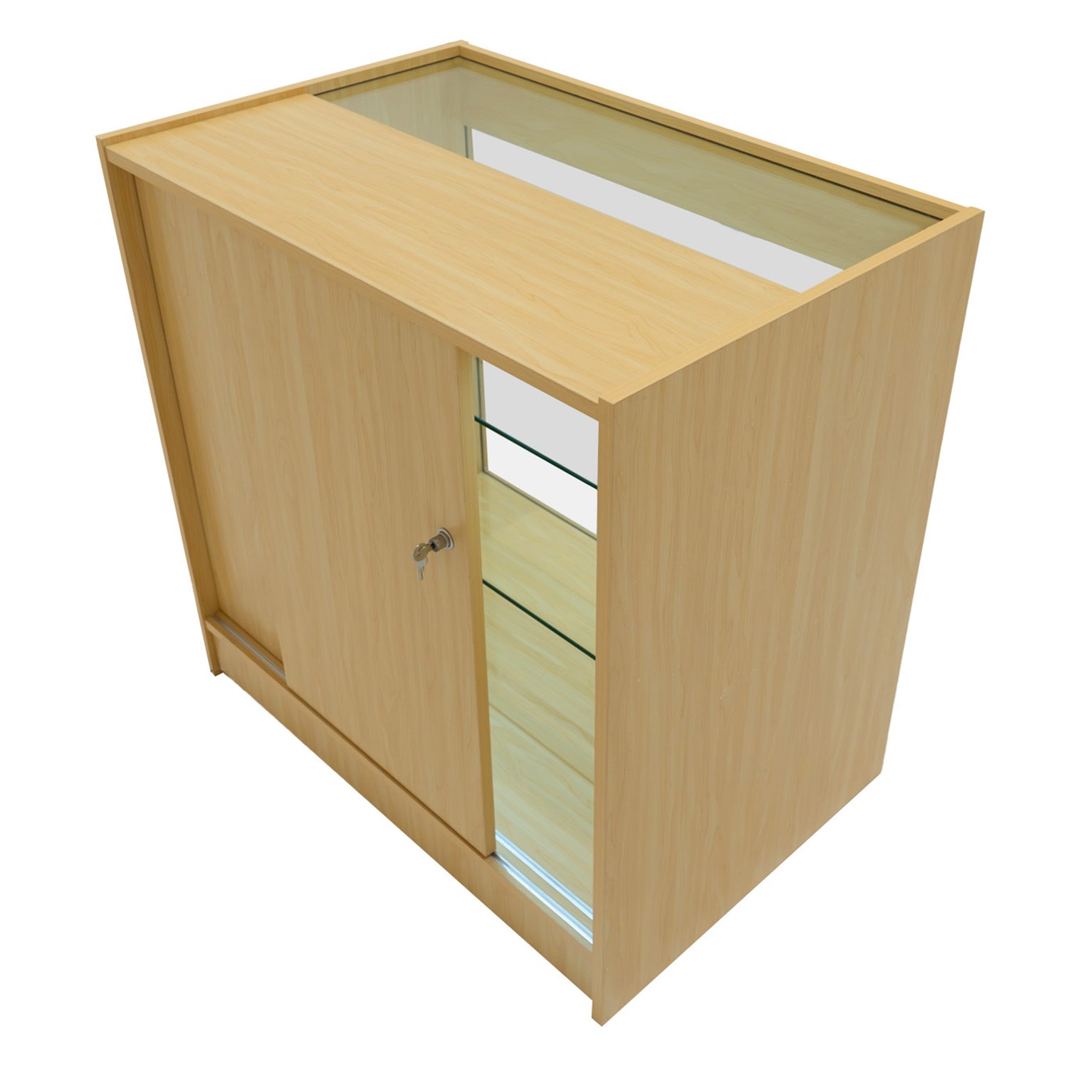 The C900 and K900 counters are designed with both storage and display efficiency in mind. The C900 features two display shelves and one hidden storage shelf, while the K900 offers three display shelves all enclosed in a solid glass front panel - making them ideal for retailers who want to place greater emphasis on visual merchandising. Both counters include bright white LED lighting to ensure your products are clearly visible and attractively presented. At the rear, lockable sliding doors provide discreet and secure access, maintaining a clean and streamlined appearance from the customer’s viewpoint.