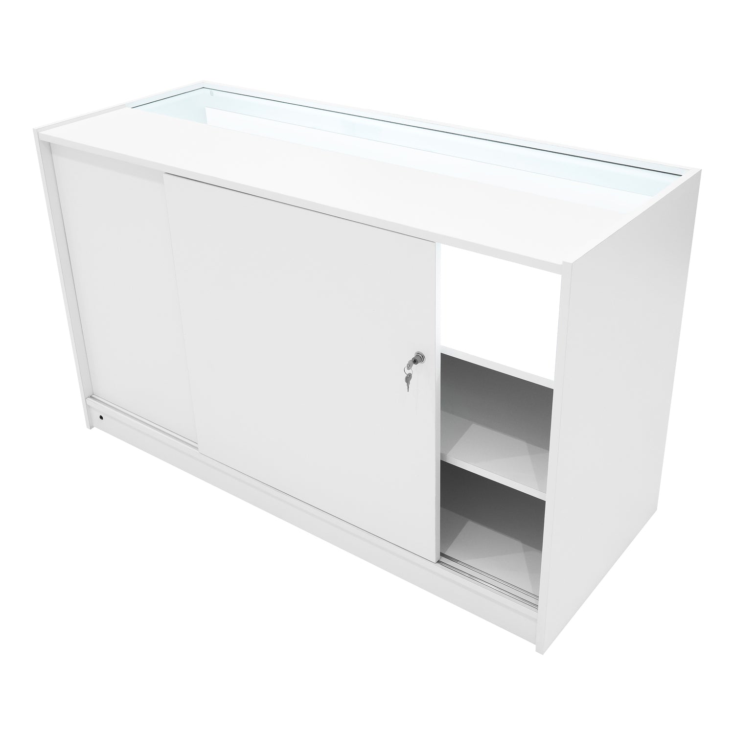 All counters in this range are constructed from high-quality MDF and finished in a durable white melamine coating, combining resilience with a clean, modern aesthetic. The K1500 and B1500 also feature toughened glass display panels, offering a premium presentation surface that complements the overall professional finish. The entire collection is built to withstand the demands of high-traffic retail environments.