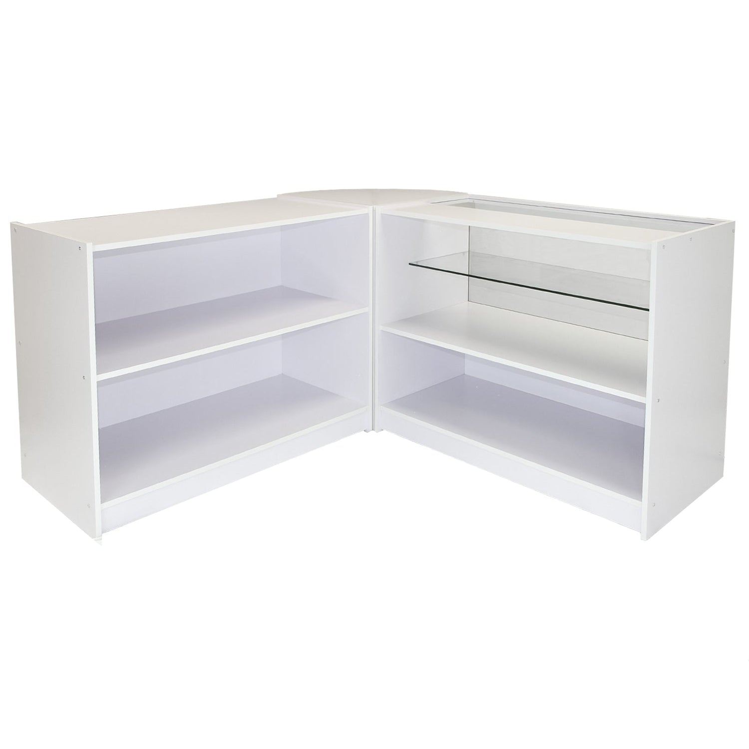 The closed CM60 shop counter is a curved retail display unit with storage shelves at the back. It's been designed to connect any combination of the A1200, B1200, C1200 or K1200 counters together to create a large L shaped counter set. But if you prefer it can also be used as a standalone unit.