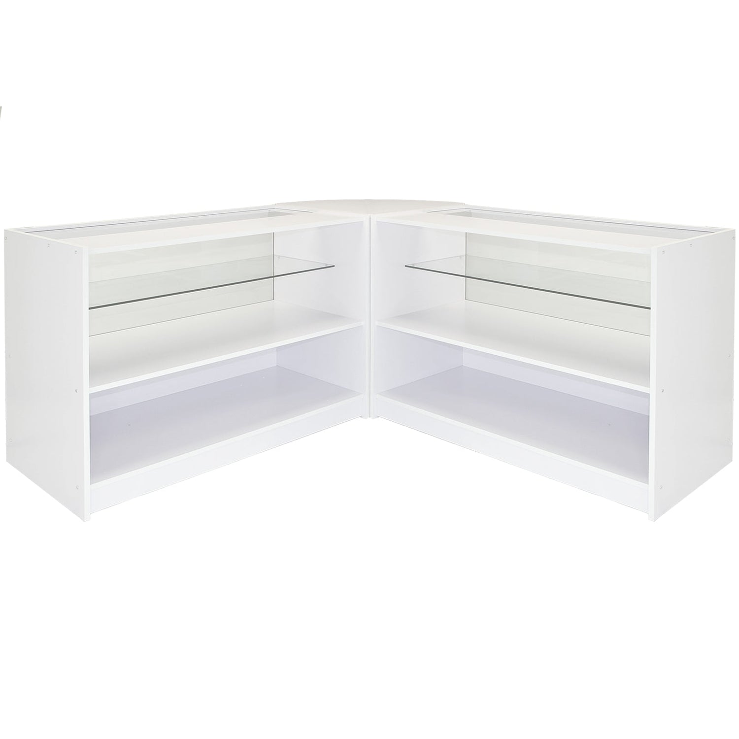 Each of the units in this set are designed to fit together to create a stylish shop counter unit which will provide the perfect platform to display products in any retail setting.