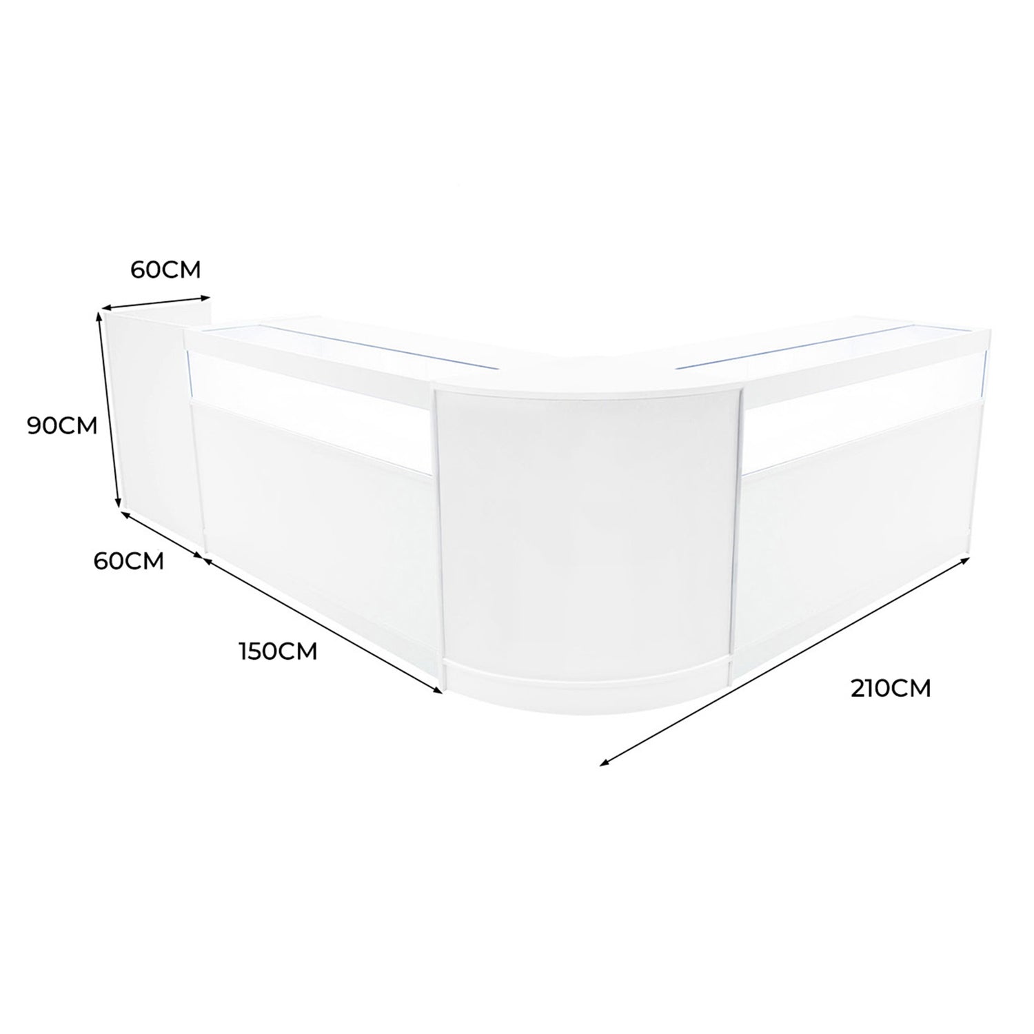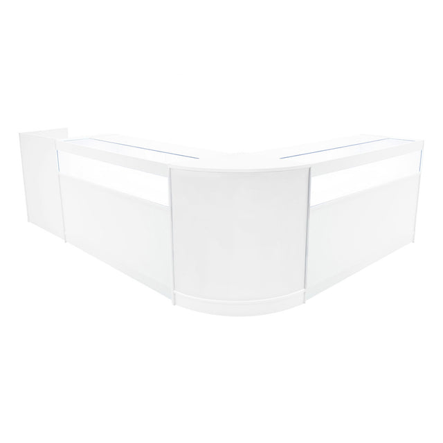 All counters are constructed from high-quality MDF with a durable white melamine finish, ensuring long-lasting performance and a consistent, contemporary look. This shared material and finish create a unified aesthetic across your counter layout, while toughened glass elements in the B1500 add a refined touch to key display areas.