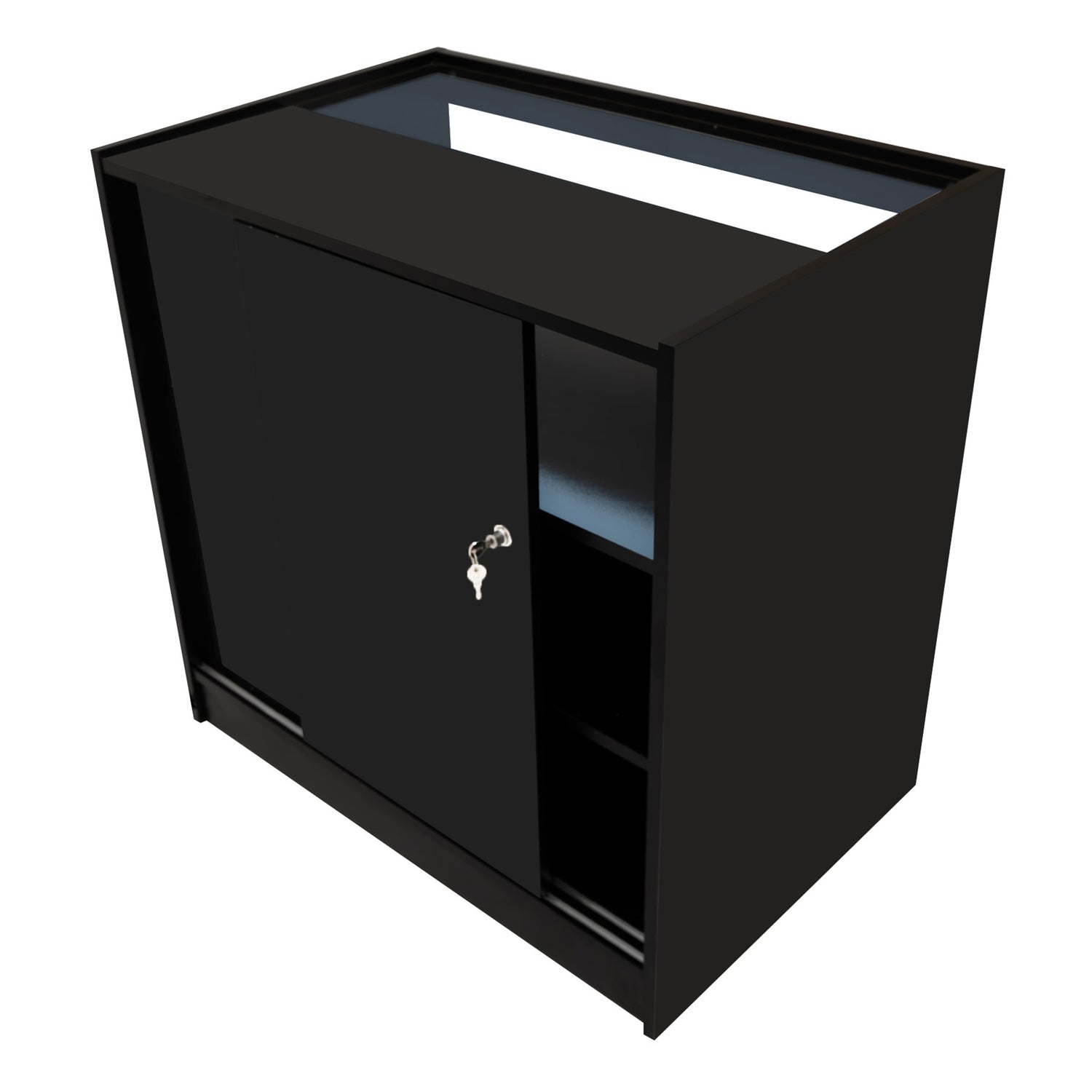 All counters are constructed from high-quality MDF with a durable black melamine finish, ensuring long-lasting performance and a consistent, contemporary look. This shared material and finish create a unified aesthetic across your counter layout, while toughened glass elements in the B900 add a refined touch to key display areas.
