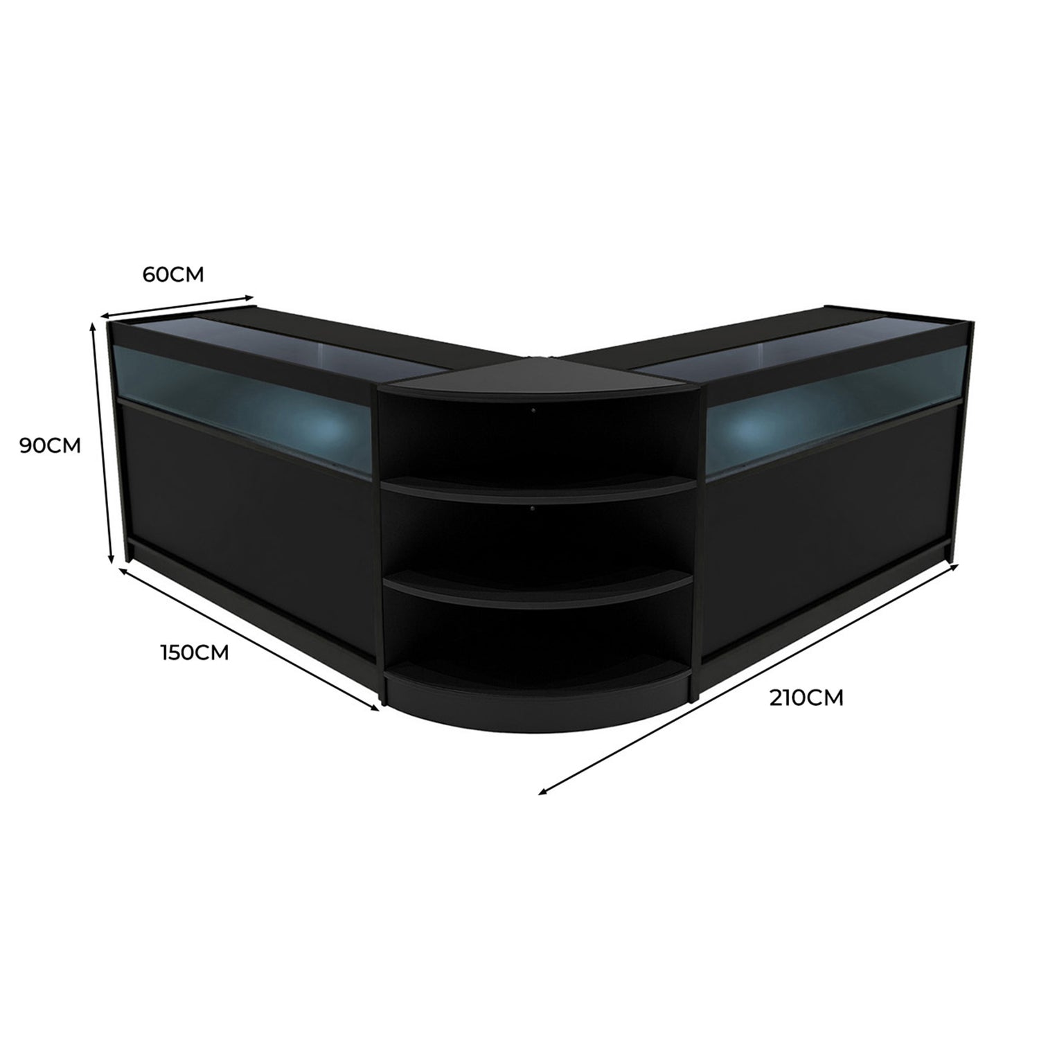 Both the B1500 and LM60 counters are constructed from high-quality MDF with a durable black melamine finish, ensuring long-lasting performance and a consistent, contemporary look. This shared material and finish create a unified aesthetic across your counter layout, while toughened glass elements in the B1500 add a refined touch to key display areas.