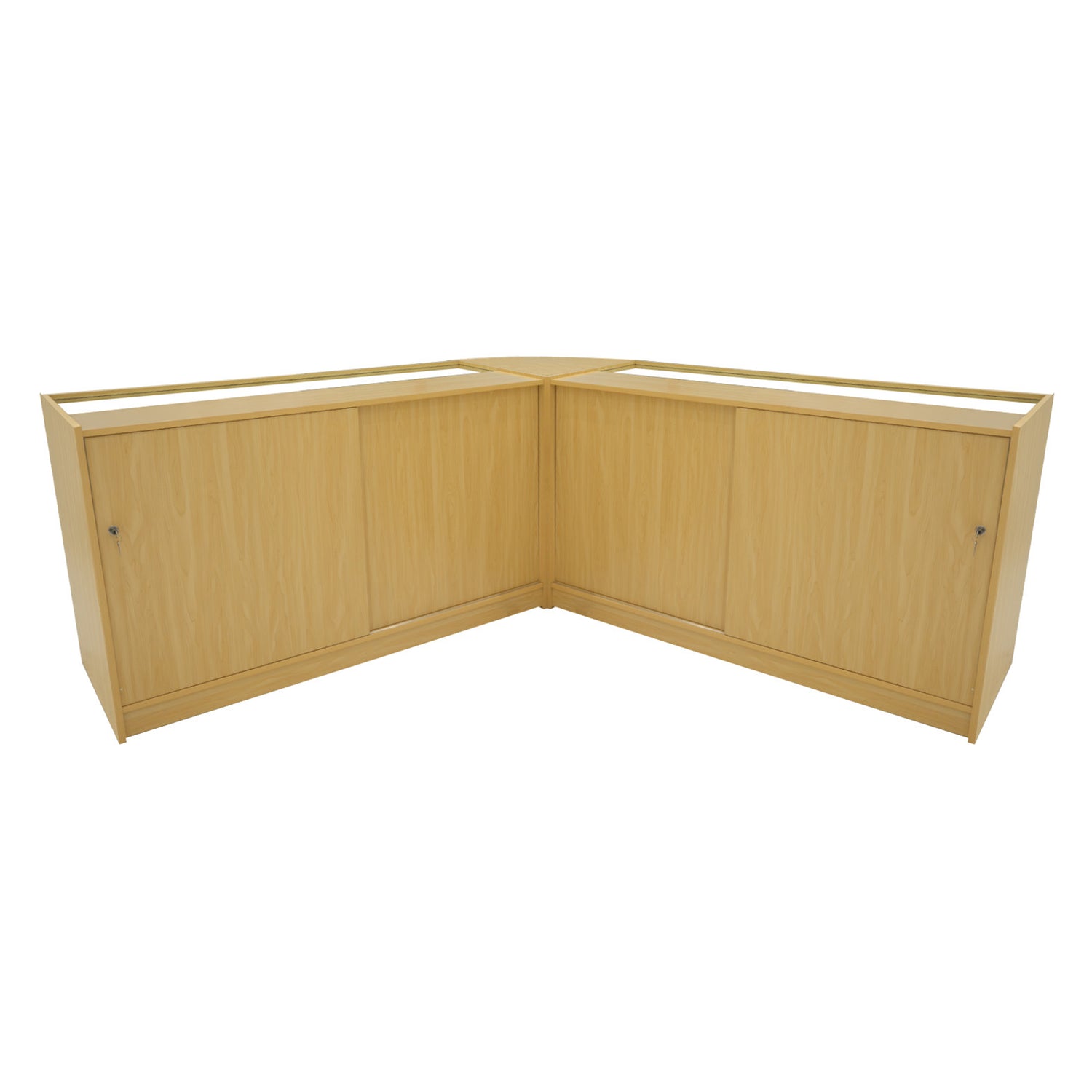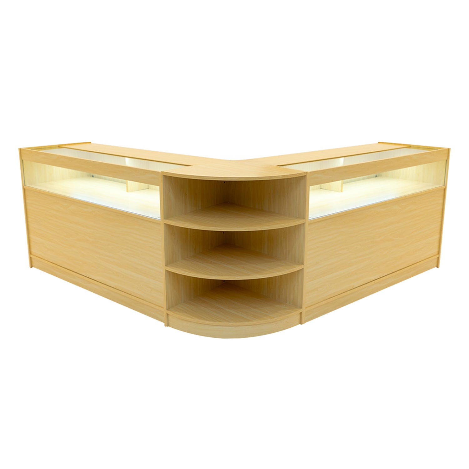 Both the B1500 and LM60 counters are constructed from high-quality MDF with a durable maple melamine finish, ensuring long-lasting performance and a consistent, contemporary look. This shared material and finish create a unified aesthetic across your counter layout, while toughened glass elements in the B1500 add a refined touch to key display areas.