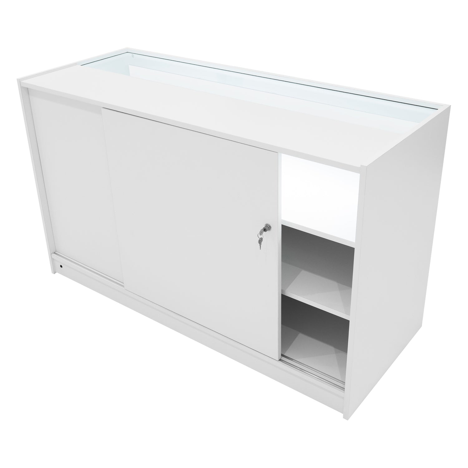 Both the B1500 and LM60 counters are constructed from high-quality MDF with a durable white melamine finish, ensuring long-lasting performance and a consistent, contemporary look. This shared material and finish create a unified aesthetic across your counter layout, while toughened glass elements in the B1500 add a refined touch to key display areas.