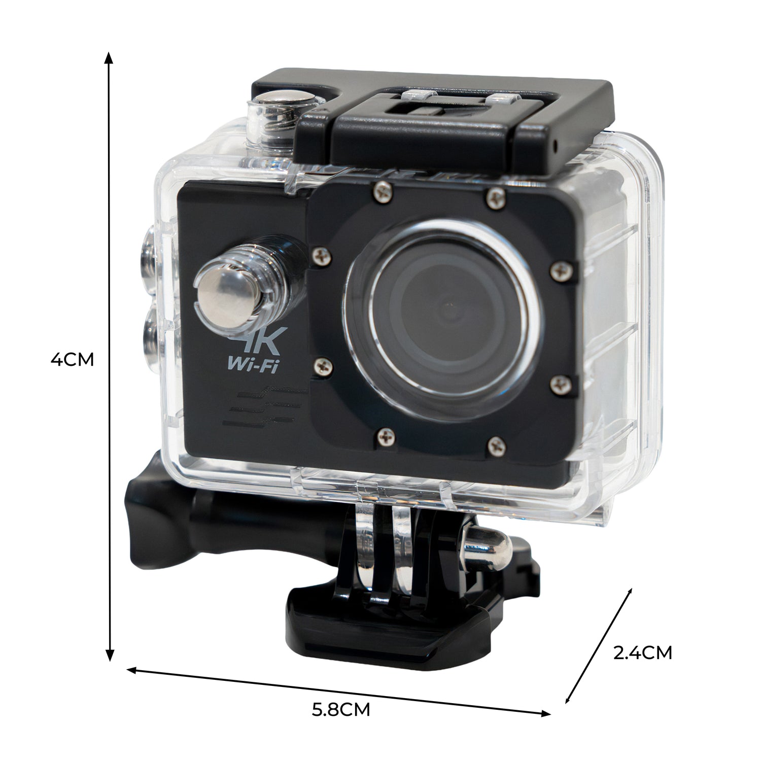 The camera operates via a stable Wi-Fi connection with a transmission range of over 50 metres. Compatible with both Android and iOS devices and fitted with a rechargeable 3.7V battery, this camera exudes convenience. A waterproof protective case, secure mounting options, and a zip-up carry bag ensure the camera remains safe, organised, and ready for use in all conditions.