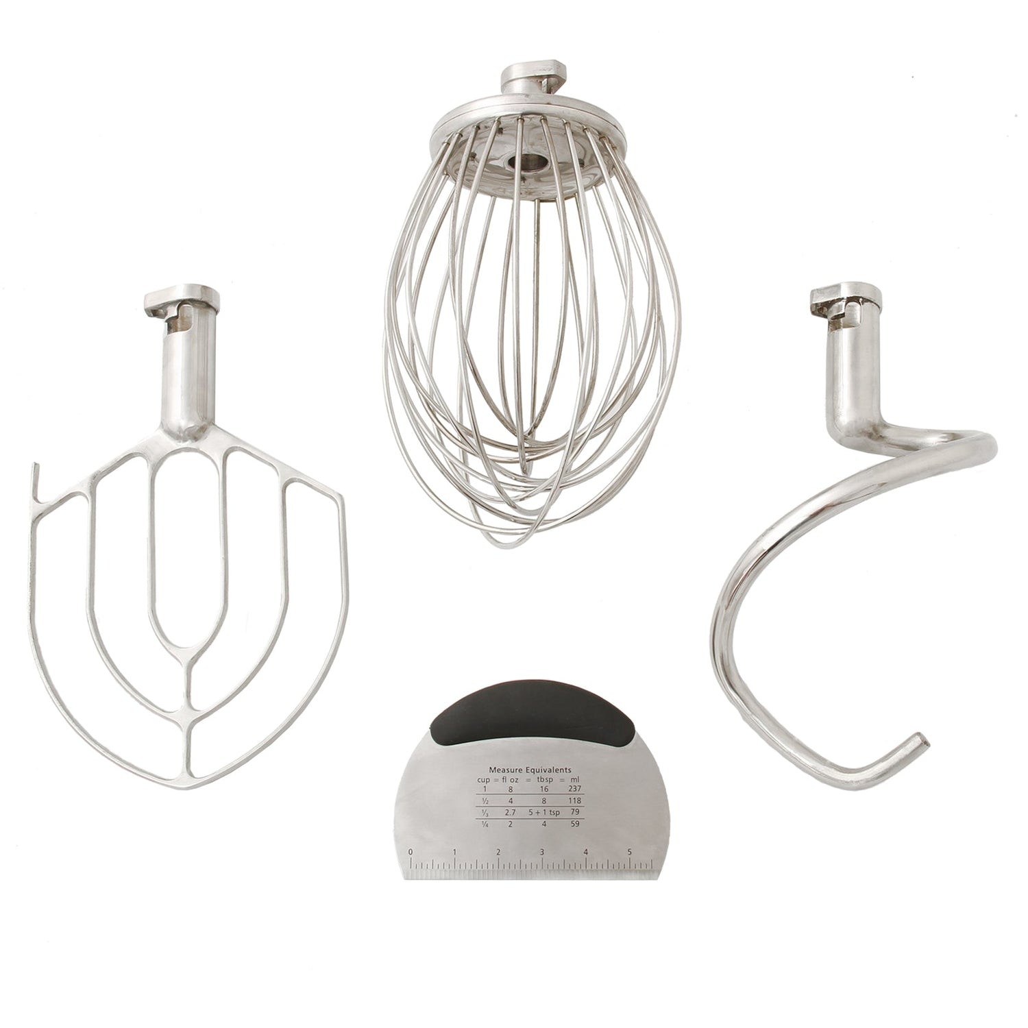 Use the wire whisk (or whip) to incorporate air into liquid, great for making meringues, whipped cream or frosting – best for use at medium to high speeds.