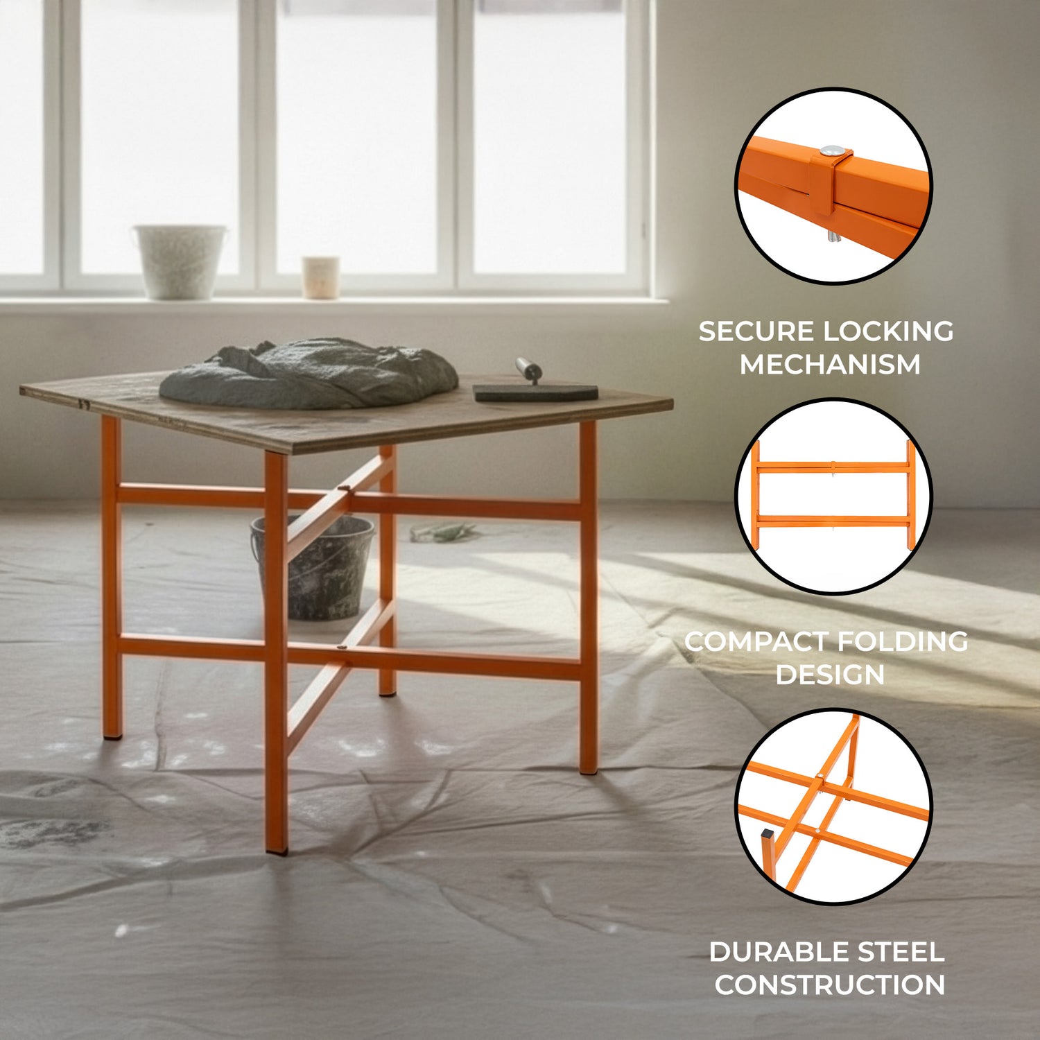 Crafted from premium 25mm x 25mm square box section steel, these stands deliver outstanding durability and stability on any construction site. Their vibrant orange powder-coated finish adds a touch of visibility and style while providing excellent resistance to everyday wear. Sized to fit boards measuring approximately 600mm x 600mm, they offer the perfect combination of reliability and practicality for daily professional use. Each set includes five stands, providing flexible coverage across your working area and ensuring you always have support exactly where it’s needed.