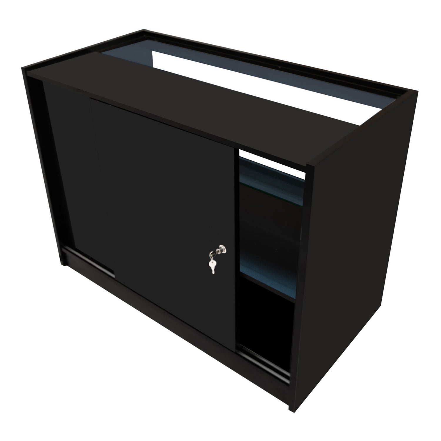 All counters are constructed from high-quality MDF with a durable black melamine finish, ensuring long-lasting performance and a consistent, contemporary look. This shared material and finish create a unified aesthetic across your counter layout, while toughened glass elements in the C1200 add a refined touch to key display areas.