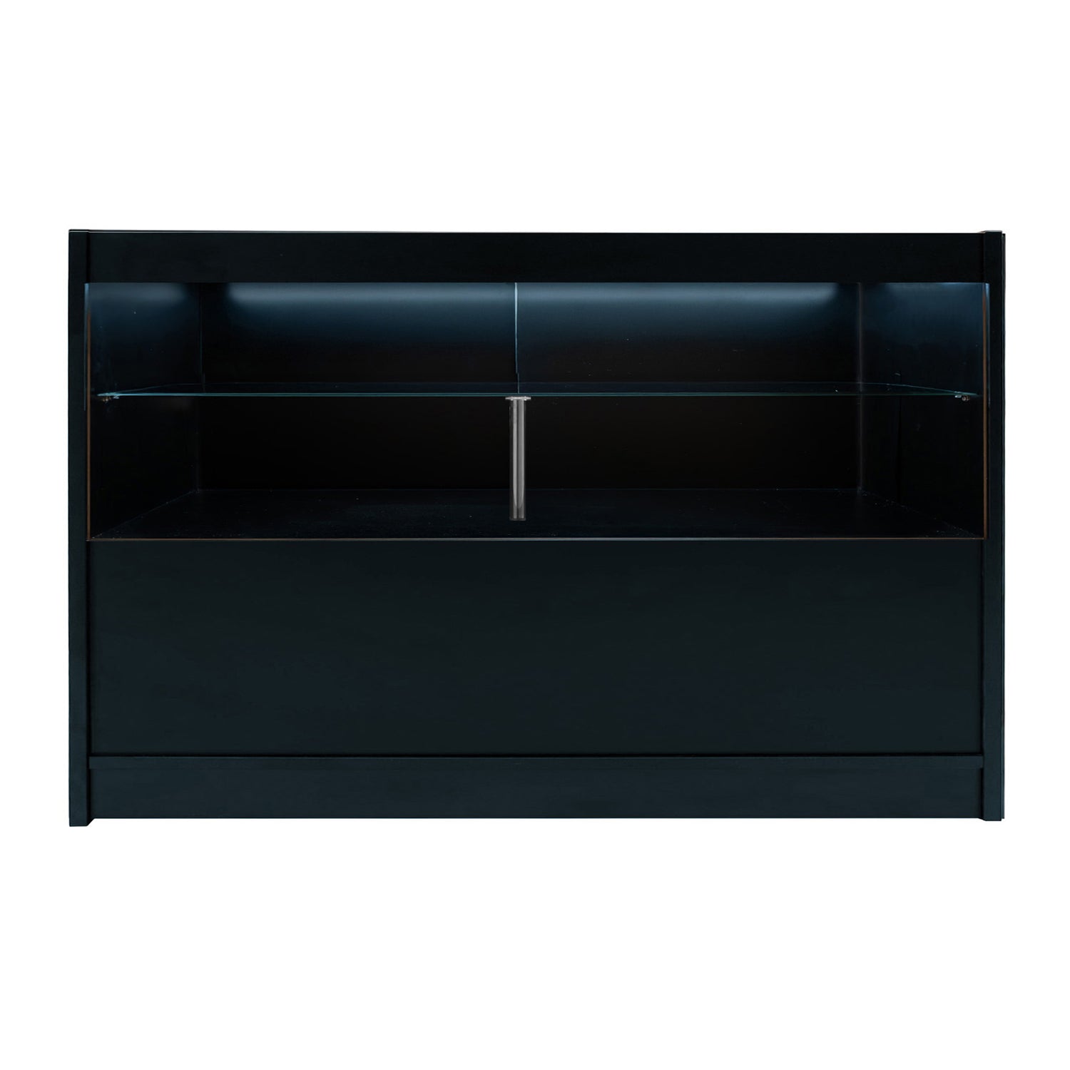 All counters are constructed from high-quality MDF with a durable black melamine finish, ensuring long-lasting performance and a consistent, contemporary look. This shared material and finish create a unified aesthetic across your counter layout, while toughened glass elements in the C1500 add a refined touch to key display areas.