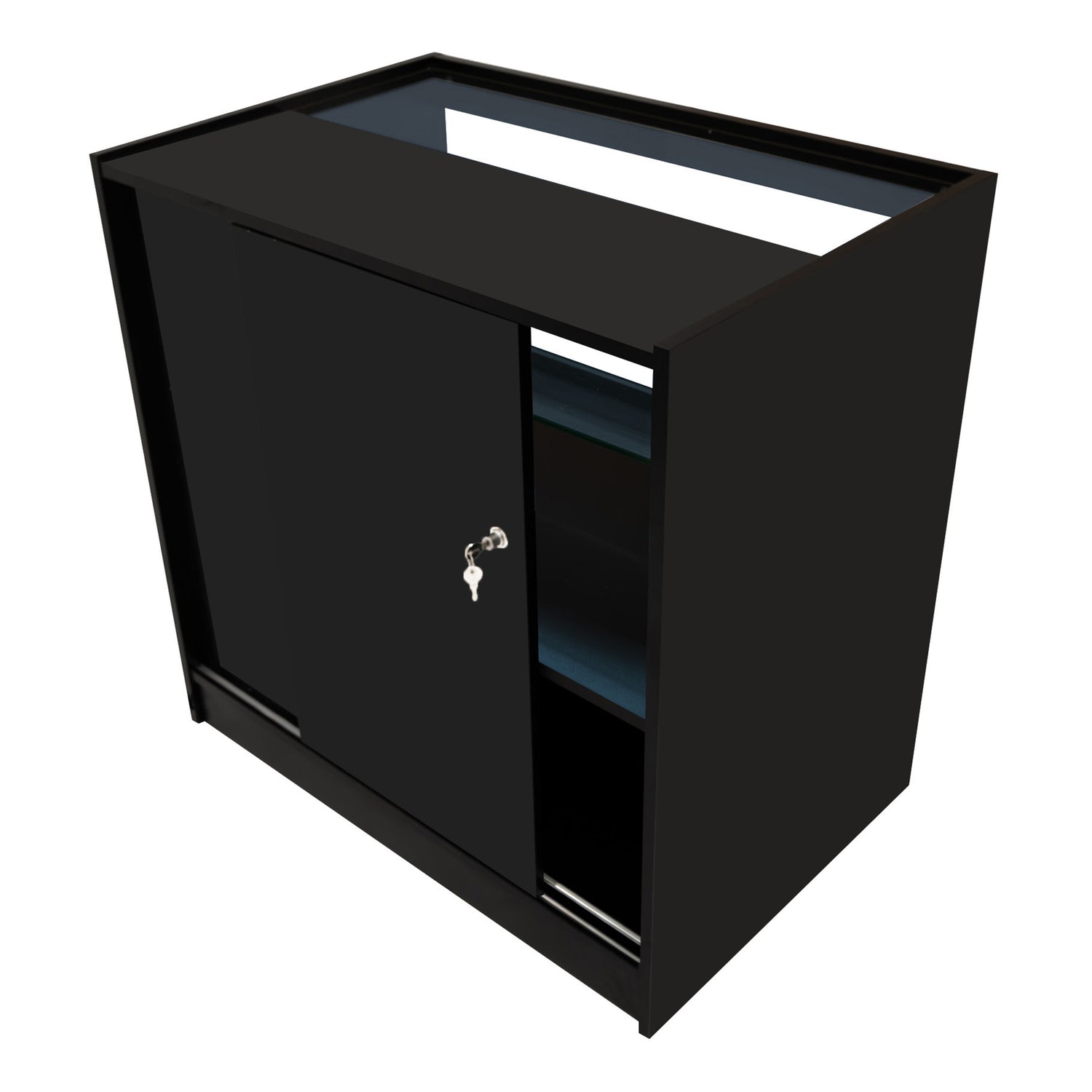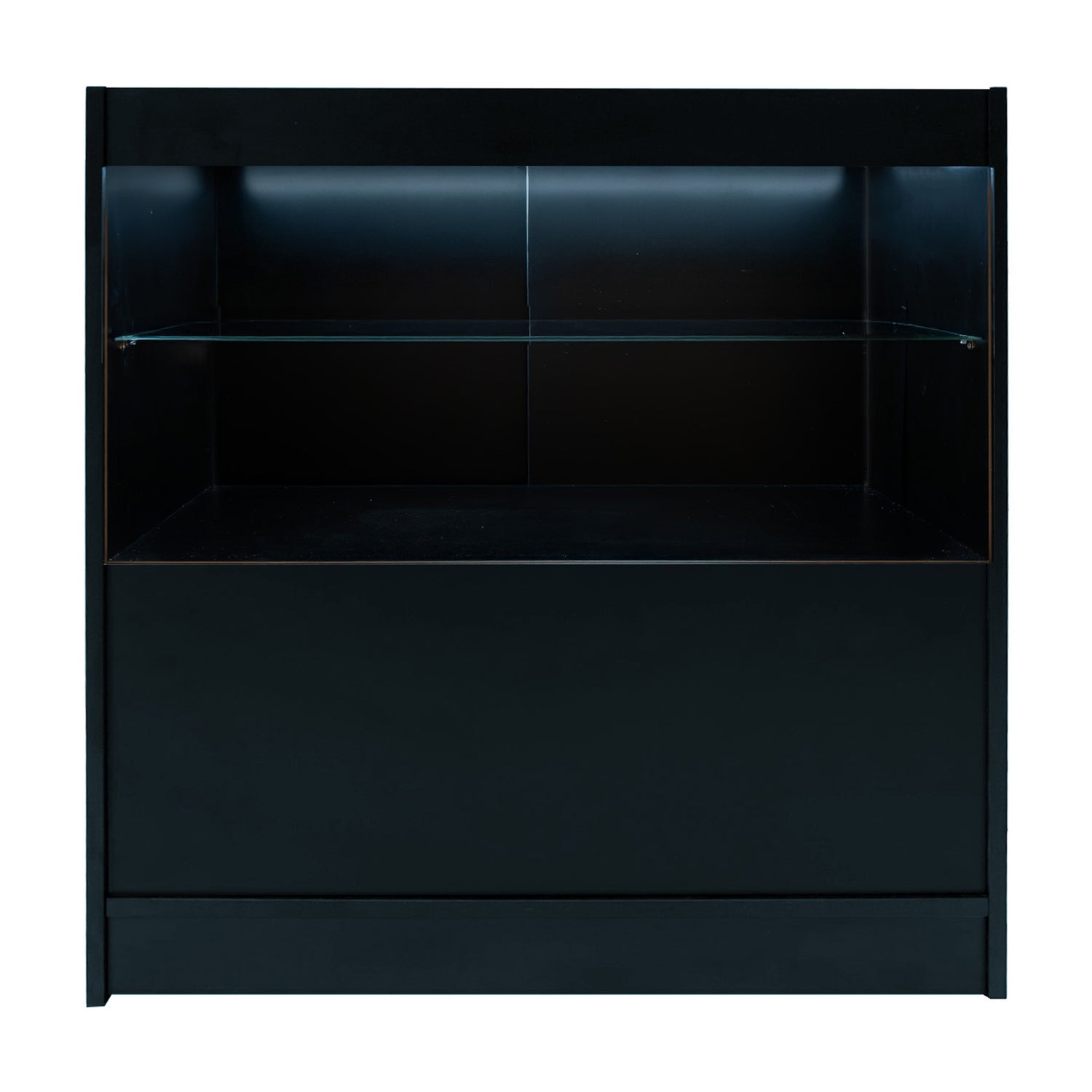 All counters are constructed from high-quality MDF with a durable black melamine finish, ensuring long-lasting performance and a consistent, contemporary look. This shared material and finish create a unified aesthetic across your counter layout, while toughened glass elements in the C900 add a refined touch to key display areas.